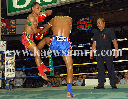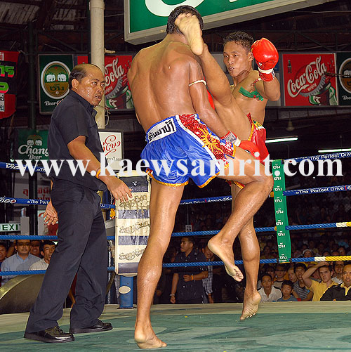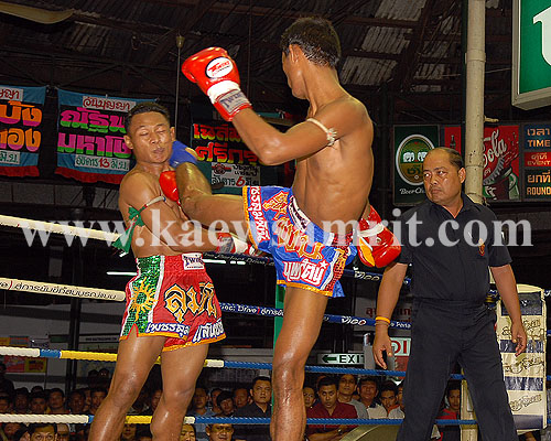 Sanchai showing his usual sublime skills early on, but Nopparat also on top form making it very close, Sanchai had a great 3rd, but Noparta a huge 4th round, where he repeatedly span Sanchai to the canvas and also landed with solid knees that really slowed Sanchai down. Sanchai had to chase the fight in the final round as he was behind and shook up Nopparat a little with punches and scored well with kicks and knees. The fight finished super close again, but Nopparat got the nod and won Sanchai's Lumpini 130 pound title in the process