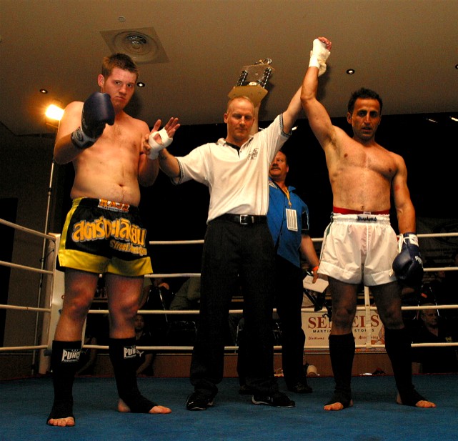 Sorry I haven’t been on here since my last post. I was still too busy for a day or so after the promotion. Now I am still trying to recover from the lack of sleep and stress. I would just like to thank all trainers, fighters, sponsors, ring officials and fans for making this another very successful promotion. Also a very big thanks to Australian ISKA Representative Rob Murdoch for all his help with co-sanctioning my promotion and helping me sort out the rule differences between the two organizations we work for and coming to a fair compromise for the main Title fight which was the co- sanctioned event.