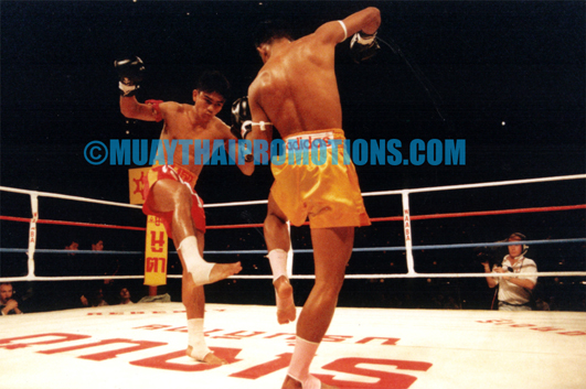 NAMKHABUAN (RED) IN BATTLE WITH NUATORANEE AT BURSWOOD INTERNATIONAL RESORT BALLROOM PERTH, WESTERN AUSTRALIA 1992.