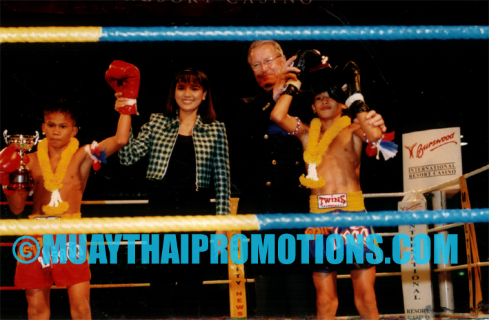 How about the guy in the middle? He was an Australian World Champion-in what?? A legend, here with Thai legends at Burswood Resort Casino 1992.
