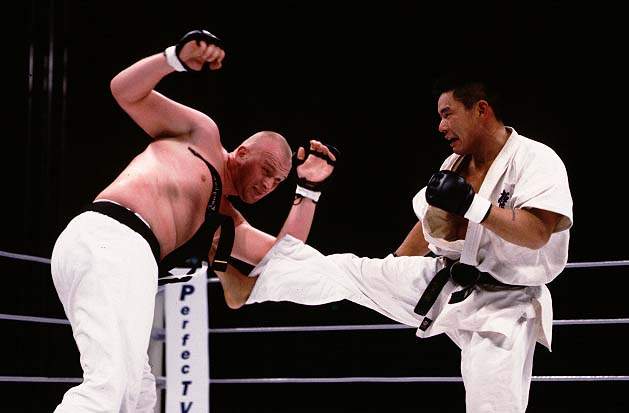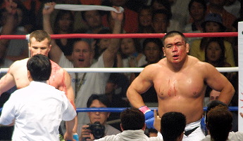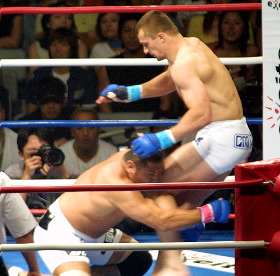 You are right Matt, Fujita has a huge melon and a very good chin. The best prove was his fight against Shamrock (see picture) in the Pride 10. It takes a strong fighter to beat Shamrock in a MMA/Pride fight, and Fujita has done that.