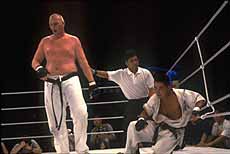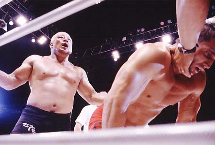In the last pic, Ken Shamrock threw in the towel cuz he ran out of gas and couldn't contiue (supposedly because of steroid use, his heart became swollen!).