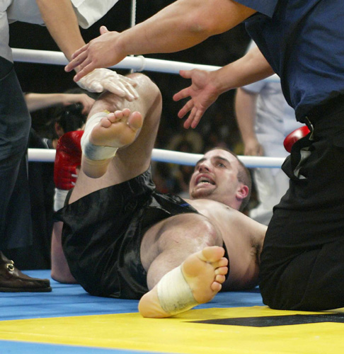 Kurosawa damage his kneecap in his Pride/karate fight, and he went through two big knee-cap surgery, and the doctors did not give him a chance to return in the ring. It took Kurosawa more than a year just to train his kneecap so strong that he could walk.