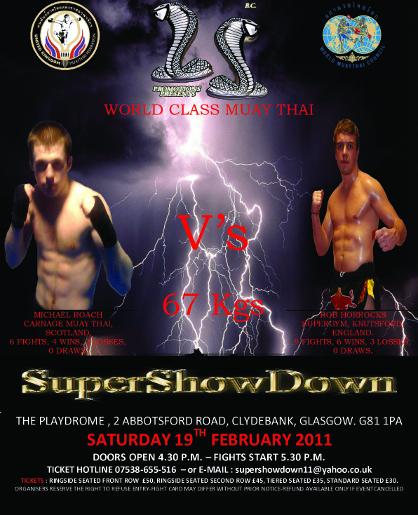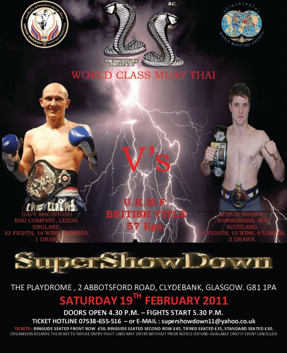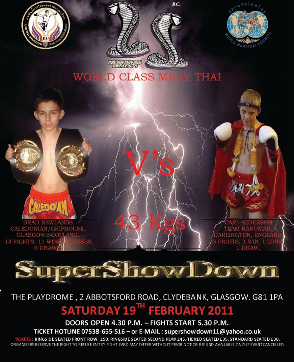 Well done Brian on a great show.... thanks very much to Jeoffrey Batista and Alan Currie for coming in at a few hours notice when Robin downer pulled out yesterday afternoon! It wasn't what i wanted to fight a lesser experienced opponent in a B class fight (when i was meant to fight A class) who was brought in very very late but can only fight who's infront of me. It was either that fight or let all the training i done go to waste so thanks Alan and Jeoffrey, great lads!