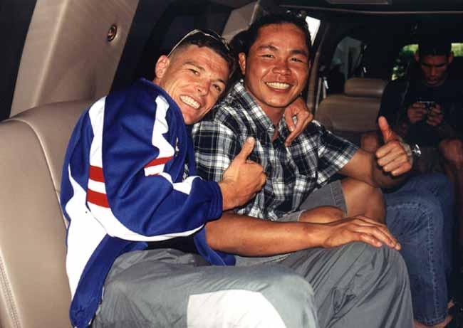 On our way to the weigh ins day before the fight. John Wayne Parr with Jonsonon.