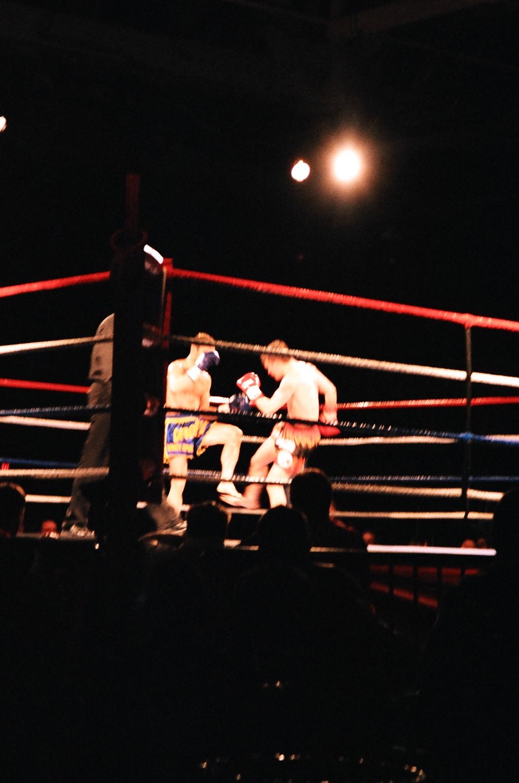 As the second round started the crowd got into it chanting TNT. Trevor picked up the clinching and landed some knees to Brackenbury’s ribs. Trevor has shown definite improvement in his clinching technique. In the past Trevor used to grab the ropes just to be separated by the referee. Now he seems much more comfortable and doesn’t fall victim to Brackenbury’s spinning techniques. Trevor does take a teep in this round which plants him but he was unhurt.