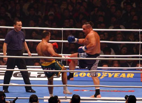 According to my bro he was trainning in Whakatane with Selwyn Jones an old trainner from the Bay Of Plenty area.I reckon it sux that boys like Andrew,Jason and Dougie have to fight off in the local tournaments,considering that these boys have done the hard yards.I doubt Toa would get past either of the afore mentioned,maybe K1 should be more interested in giving wild cards like Jason or Dougie a go.Got me stomped on why.....OOOH its Japan thats right boys,he is using the front of a Maori Warrior,so he gets threw after qualifying threw the local pubs,gets a moko just for the fight and the press conference and then he is in.My bro went to sparr him but they got word that he don t mess around,so he turned down doing a couple of rounds...Apparently only sparred in boxing a bit,no boxing fightsI heard he gets good money too,very tough on the boys.I am quite sure collectvely we could put a gimmick together.That is sad.